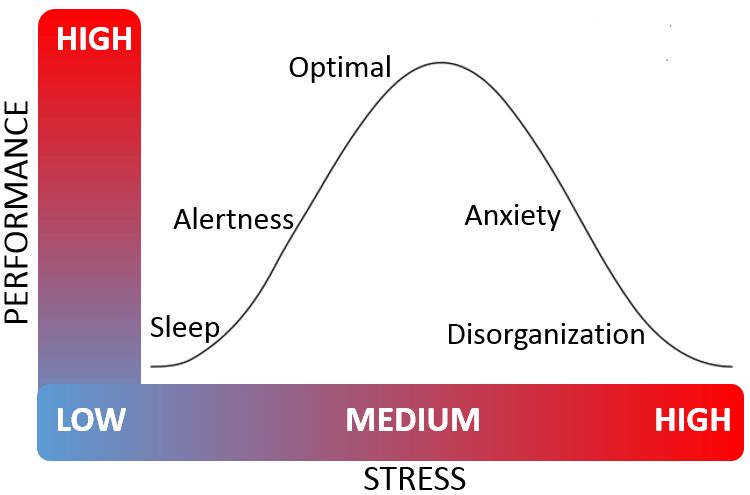 البته همانطور که در عکس بالا دیده می شود این موضوع در مورد استرس تا یک میزان خاصی است؛ که حدود پنجاه درصد حداکثر میزان استرس قابل تحمل هر فرد است؛ بیشتر شدن استرس از این حد سبب سردرگمی، فشار بیش از حد، خستگی مفرط و … می گردد و سبب افت شدید عملکرد فرد نیز می شود.